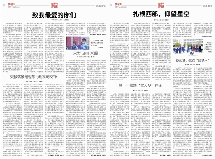 2023年7月18日,由共青团中央主管、中国青年报社主办的《中国青年作家报》志愿文化整版报道北京航空航天大学研究生支教团事迹。作为其中的一员,吕子良参与中宣部志愿服务促进中心、中国青年志愿者媒体中心线上文化宣传志愿,运营“中国志愿”“西部志愿汇”公众号,编辑推送200余篇,阅读量超过400000人次。