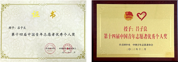 近日,共青团中央、中国青年志愿者协会对全国志愿服务先进典型进行表彰,我校304am永利集团官网2023级硕士研究生吕子良荣获“中国青年志愿者优秀个人奖”(全国260人,北京市仅13人),是唯一获此荣誉的北京市大学生。