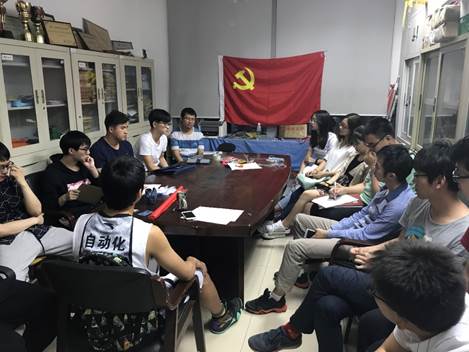 在五四青年节到来之际,习近平总书记来到北京大学考察。在北大,习近平总书记参加师生座谈会,认真听取青年学生发言,与他们亲切交流并发表重要讲话,给青年人提出了新要求和新期望。2018年5月23日,SY17033党支部于新主楼E801召开学习会。党支部应到党员17人,实到16人,事假1人,会议由党支部书记张皓主持。